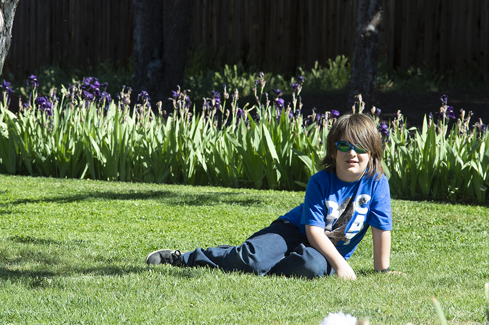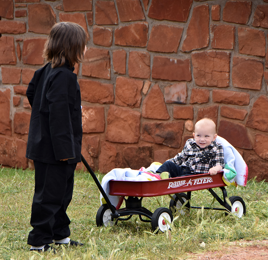 The boys were only slightly less exuberant than their cousin. Don’t be fooled by that innocent smile on the itty bitty one, nor the big brother’s apparent calm. The little one was held in by a seat belt (hidden under the tie-dyed blanket) and he was trying to figure out how to escape. And Big Brother was earlier turning somersaults and cartwheels on the grass.