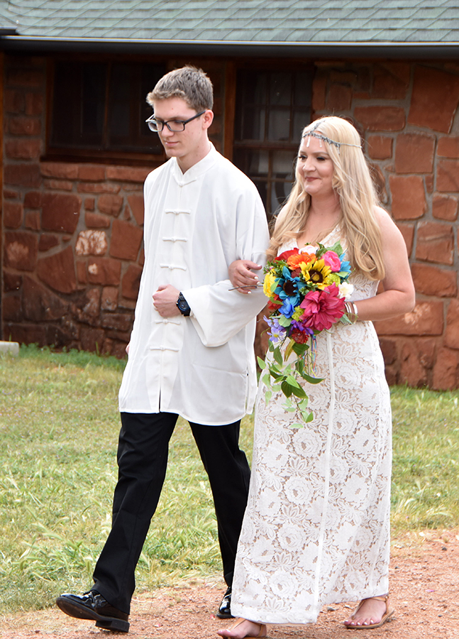 As you’ve probably gathered, this was an informal wedding. It was intended that way because there were more kids in attendance than adults. The reception was catered – at a campground – by a local BBQ company. (And the food was surprisingly excellent.) The bride and groom decided to forego a cake. Hey, they had prime rib and other goodies, so nobody was complaining.