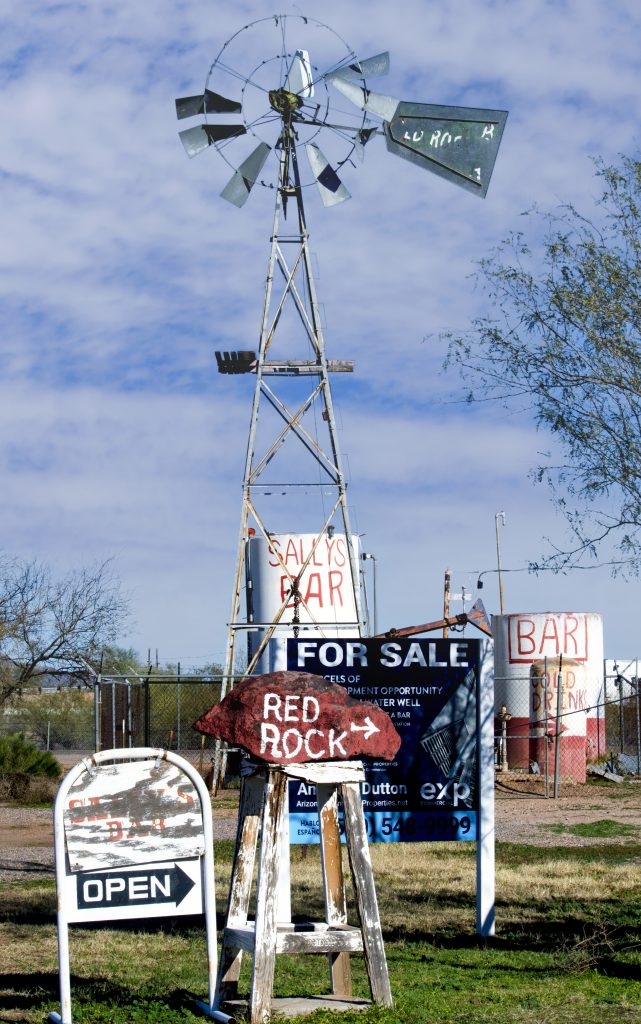 We drove back through the tiny dot called Red Rock. This corner is the most interesting place there. The bar might’ve been a nice photo, except for all the cars and trucks nosed up against its walls. Next door is an abandoned gas station. There’s a school, fire station, Dollar General, and not much else. A few businesses are listed on Google Maps – and when you zoom in, every one is a residence.
