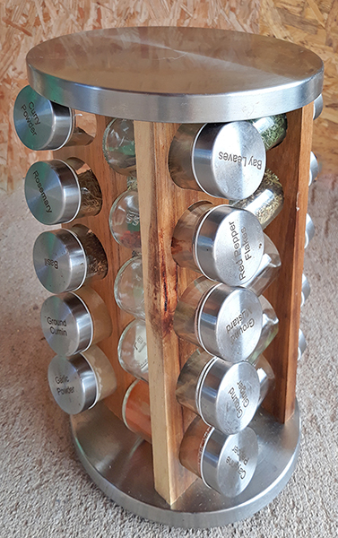 A few of the spices expired circa 2017. (Oops.) I started moving what wasn’t expired to the spice rack, and ordered new labels from Amazon. Pre-labeled spice racks like this one include stuff I never use, but never include a few things I can’t do without. (You’re seeing right. A few of the jars were full when we bought this. They were emptied into the garbage and everything was sterilized before I put anything into it that we’d be consuming. I might be crazy but I’m not that crazy.)